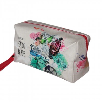 Стильная, с оригинальным принтом, вместительная, компактная, удобная, многофункциональная, водонепроницаемая косметичка. Внутри - светло-бежевая подкладка, снаружи плотный кожзам, молния, металлическая фурнитура. Модный дизайн.