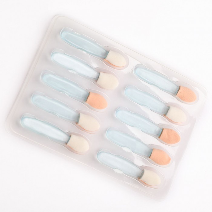 го материала, поэтому идеально подходят для чувствительной области вокруг глаз. Скошенная форма спонжа позволяет нанести тени на нижнее веко, прорисовывая тонкую линию непосредственно по ресничному контуру. Длина пластиковой ручки 3 см. Аппликаторы позволяют наносить на веки компактные, рассыпчатые и кремовые тени.