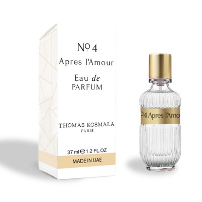 Парфюм No. 4 Apres l'Amour Thomas Kosmala — это рассказанная с помощью сочетания запахов история любви. Главные герои — жители современного мегаполиса, привыкшие скрывать свои тайные желания и искренние эмоции под маской вечной занятости, равнодушия к чужим переживаниям и стремления добиться успеха в бесконечной борьбе за место под солнцем. Однако духи Томас Космала 4, словно волшебный эликсир правды, помогают владельцам аромата выплеснуть наружу свои настоящие чувства и поделиться с ними окружающими.