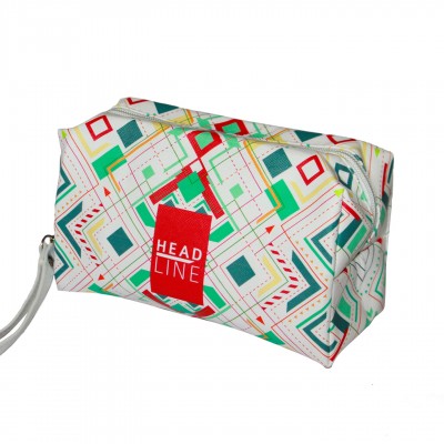 Стильная, с оригинальным принтом, вместительная, компактная, удобная, многофункциональная, водонепроницаемая косметичка. Внутри - светло-бежевая подкладка, снаружи плотный кожзам, молния, металлическая фурнитура. Модный дизайн.